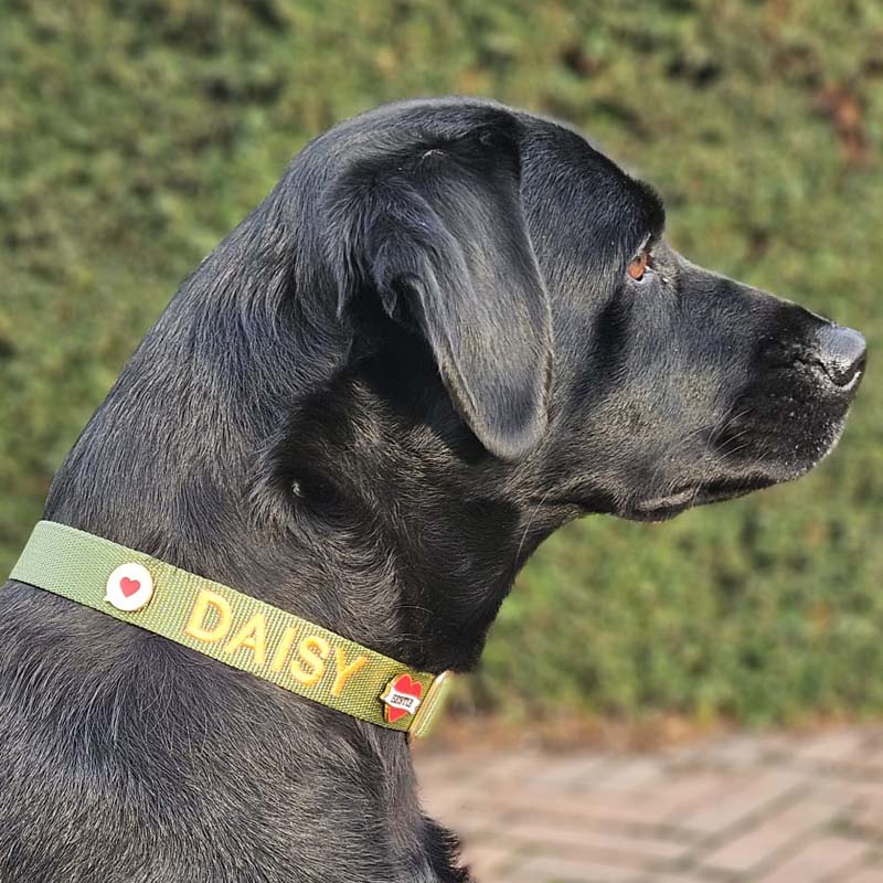 Ajoutez le nom de votre chien en broderie pour rendre l’ensemble encore plus personnel.